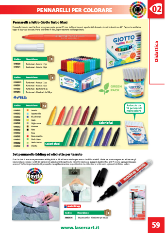 0105201 Punta maxi - Astuccio 12 pz. 010501 Punta maxi - Astuccio 24 pz. 011503 Punta maxi - Barattolo 48 pz. 011514 Punta maxi - Schoolpack da 108 pz.
